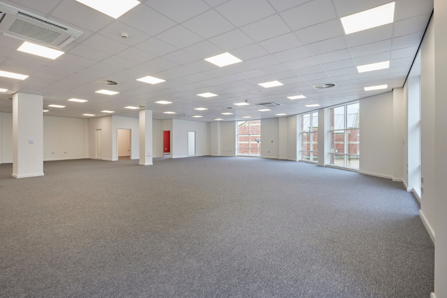 The works commenced with the clearance and strip-out of the redundant first-floor storage area, preparing the space for comprehensive redevelopment. Structural and layout modifications were undertaken to facilitate the conversion into a modern open-plan office environment with capacity for 50 workstations, along with appropriate circulation space and supporting facilities.