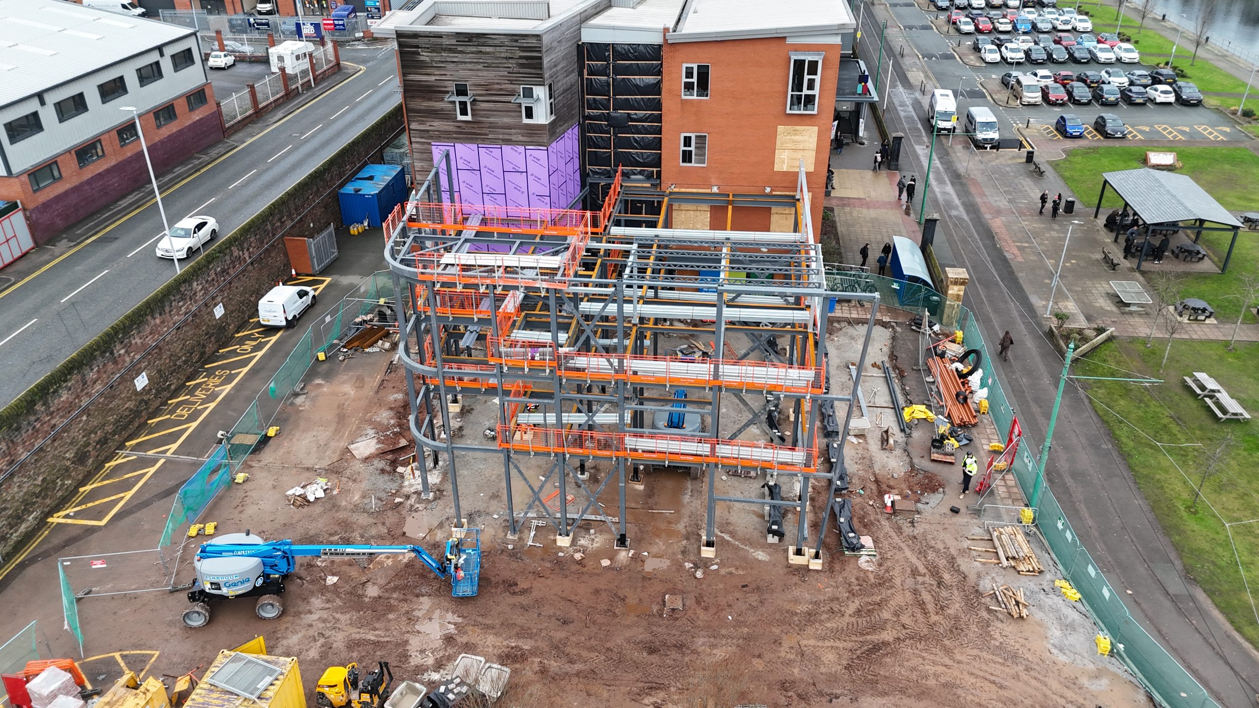 The project involves the construction of two new facilities at Wirral Met College’s 12 Quays campus: a single-storey Motor Vehicle Workshop (MV Workshop) and a two-storey teaching block known as the CEM Block.