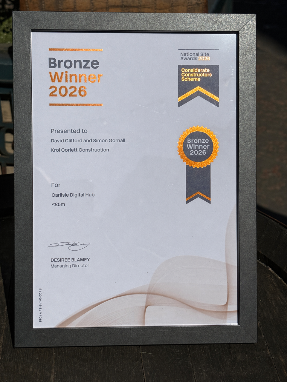 Congratulations to David Clifford and the entire team at Carlisle Library on achieving Bronze at the National Site Awards 2026. This well-deserved recognition reflects the dedication, professionalism, and strong collaboration shown by everyone involved throughout the project.